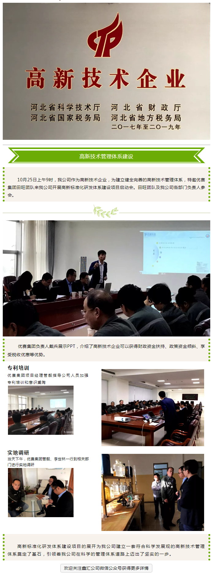 河北鑫匯:高新技術企業標準化建設與管理項目啟動